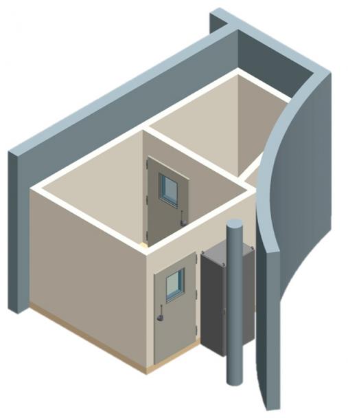 - Die Tür zu Raum 2 und/oder die Wand mit beheizbarem Fenster
